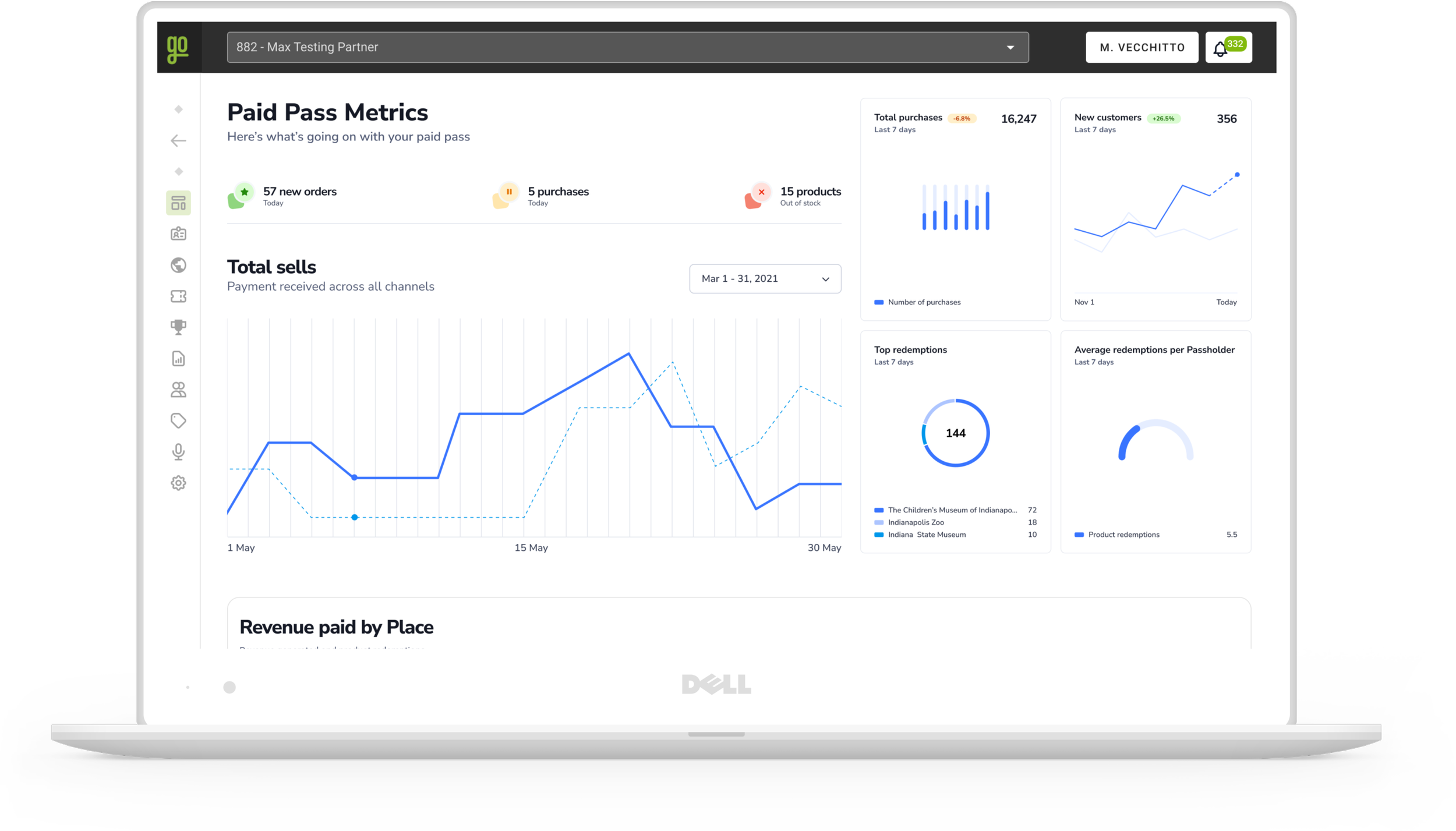 Iteration 2: The updated design was more visually engaging and included the KPIs clients wanted to track for their passes. However, feedback revealed that clients still lacked a comprehensive view of their pass performance. Additionally, although the ‘Share’ link was initially requested, user testing showed it felt out of place on the dashboard, prompting reconsideration of its placement.